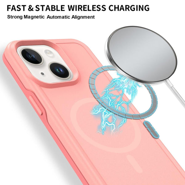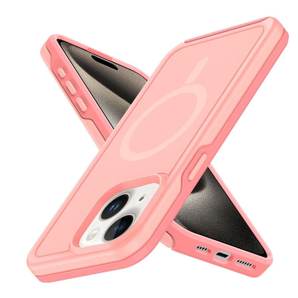 For iPhone 14 Plus Shockproof MagSafe Armor PC Hybrid TPU Phone Case(Light Pink+Coral Red)