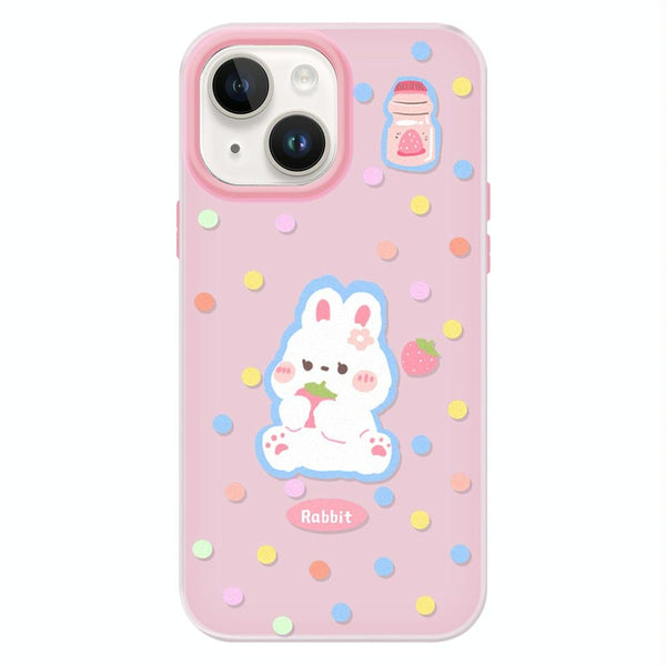 For iPhone 14 Plus Skin Feeling Jelly TPU Hybrid PC Phone Case(Polka Dot Rabbit Pink)