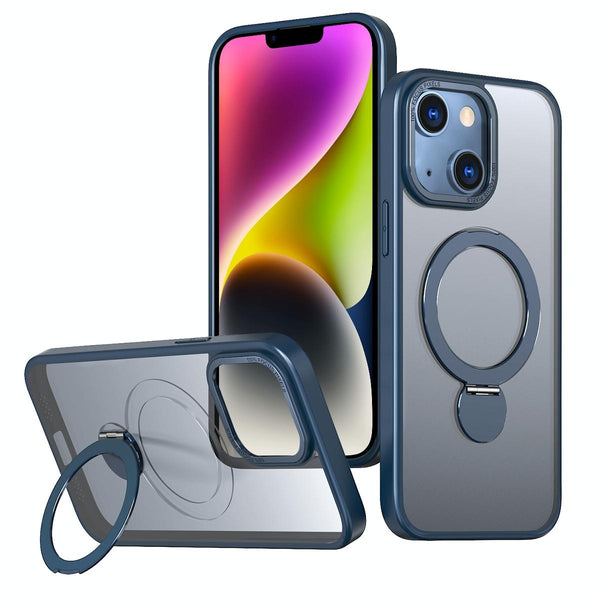 For iPhone 14 Plus Wing Series Gen2 MagSafe Metal Ring Holder Phone Case(Blue)