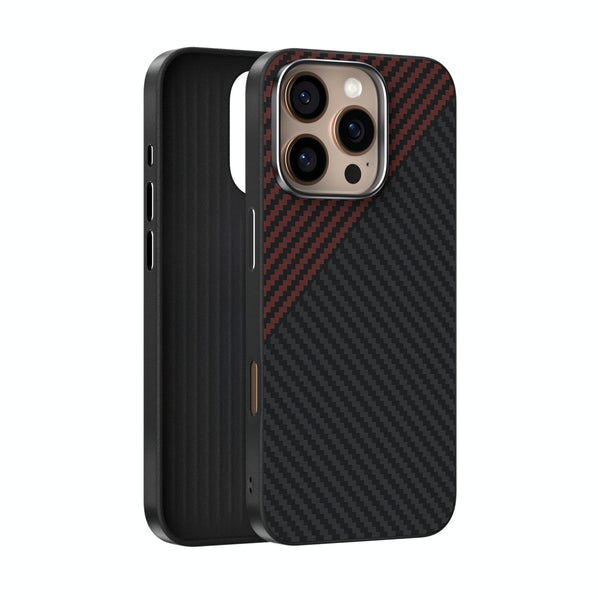 For iPhone 14 Pro ABEEL C Carbon Fiber Series 6D Micro Relief MagSafe Phone Case(Black Red)