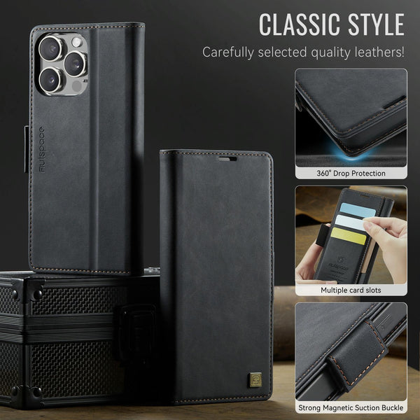 For iPhone 14 Pro AutSpace A11 Side Buckle MagSafe Magnetic RFID Phone Leather Case(Black)