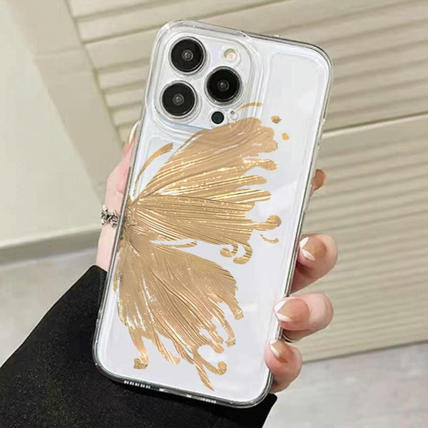 For iPhone 14 Pro Butterfly Pattern Transparent TPU Phone Case(Gold)