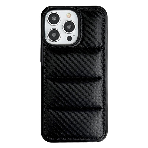 For iPhone 14 Pro Carbon Fiber Texture Down Jacket Phone Case(Black)