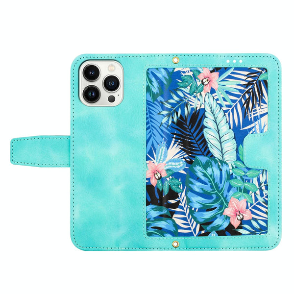 For iPhone 14 Pro Floral Pattern Leather Phone Case with Lanyard(Green)