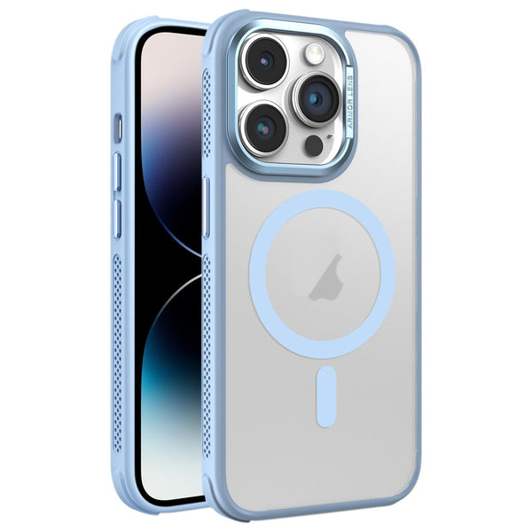 For iPhone 14 Pro Hardware Side Cooling Skin Feel Frosted Metal Lens Frame MagSafe Phone Case(Sky Blue)