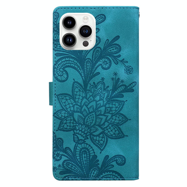 For iPhone 14 Pro Lace Floral Embossed Magnetic Buckle Leather Phone Case(Green)