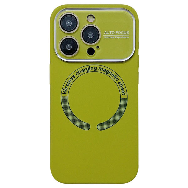 For iPhone 14 Pro Large Window Acrylic Glass Lens MagSafe Silicone Phone Case(Willow Green)