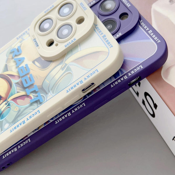 For iPhone 14 Pro Liquid Angel Eyes Hip Hop Rabbit TPU Phone Case(Purple Petal)