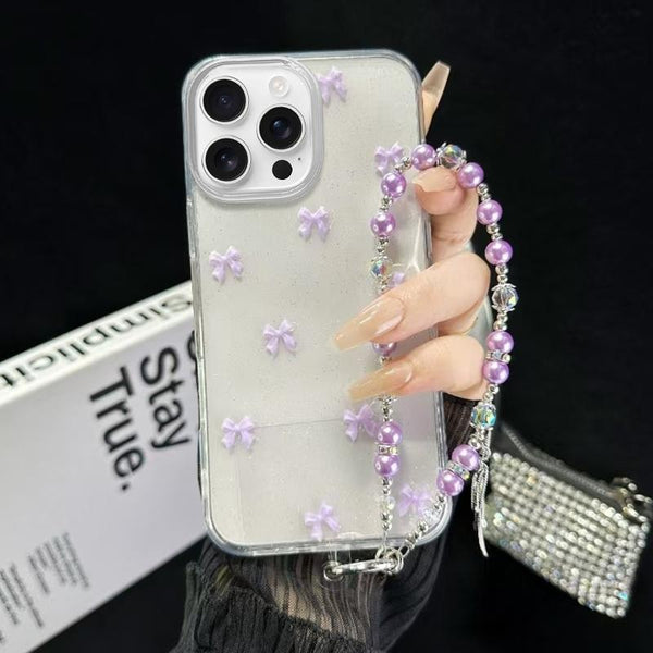 For iPhone 14 Pro Little Fresh Bow Bracelet Chain TPU Phone Case(Purple)