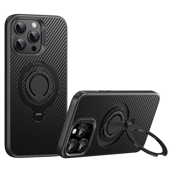 For iPhone 14 Pro Max Carbon Fiber MagSafe Phone Case with 360 Degree Rotating Holder(Black)