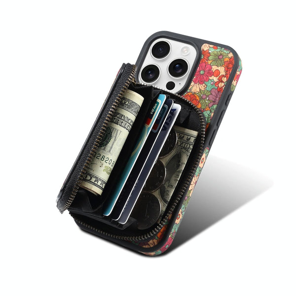 For iPhone 14 Pro Max Denior D23 MagSafe Detachable Zipper Wallet Holder Phone Case(Red)
