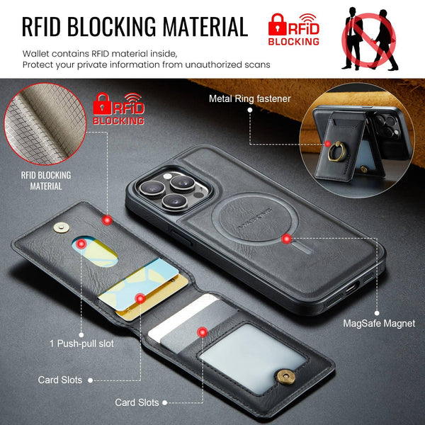 For iPhone 14 Pro Max DG.MING K1 MagSafe Detachable Wallet RFID Back Cover Phone Case(Black)