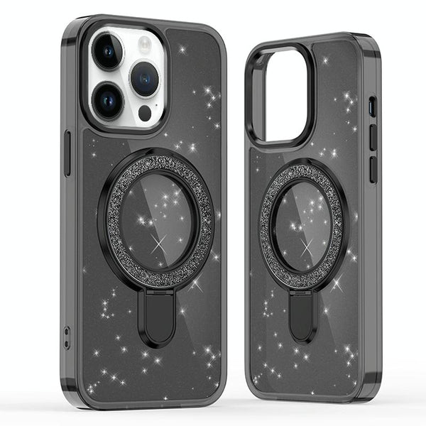 For iPhone 14 Pro Max Glitter Ring Holder MagSafe Phone Case(Black)
