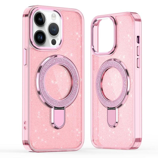 For iPhone 14 Pro Max Glitter Ring Holder MagSafe Phone Case(Pink)