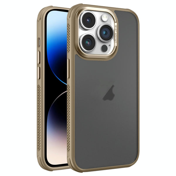 For iPhone 14 Pro Max Hardware Side Cooling Skin Feel Frosted Metal Lens Frame Phone Case(Gold)
