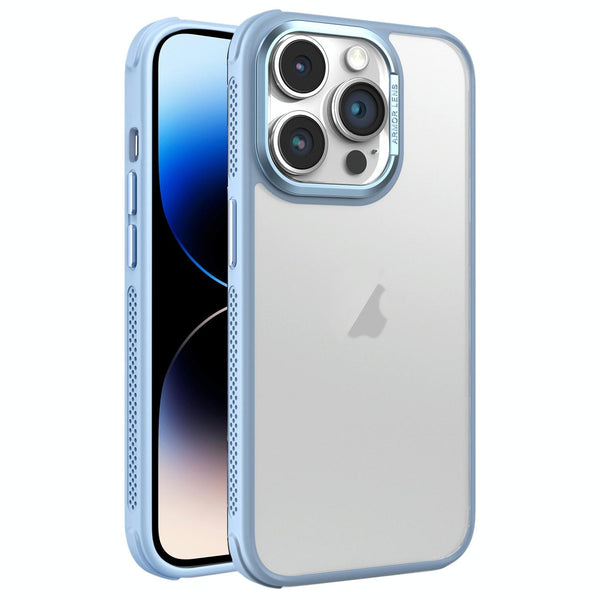 For iPhone 14 Pro Max Hardware Side Cooling Skin Feel Frosted Metal Lens Frame Phone Case(Sky Blue)
