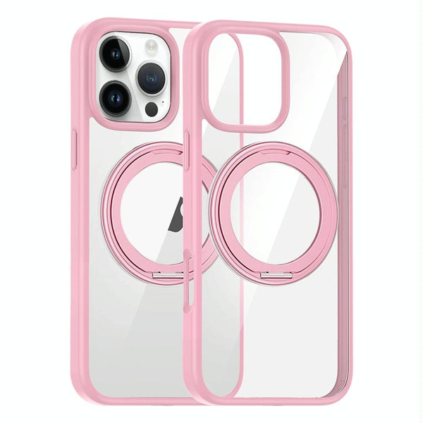 For iPhone 14 Pro Max High Transparency 360 Degree Rotating Holder MagSafe Phone Case(Pink)
