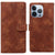For iPhone 14 Pro Max Lace Floral Embossed Magnetic Buckle Leather Phone Case(Brown)