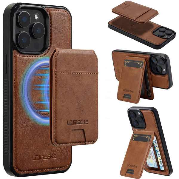 For iPhone 14 Pro Max LC.IMEEKE L3 Series Detachable RFID Card Bag Magsafe Phone Case(Brown)