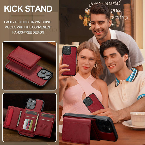 For iPhone 14 Pro Max LC.IMEEKE L5 Series Detachable RFID Card Bag Magsafe Phone Case(Red)