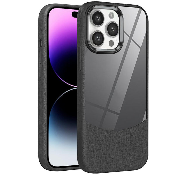 For iPhone 14 Pro Max Litchi Texture TPU Hybrid Acrylic Phone Case(Black)