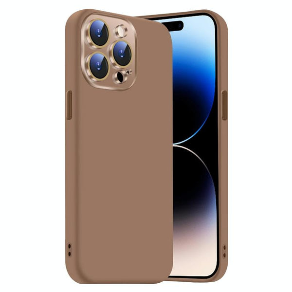 For iPhone 14 Pro Max Nano Lens Cover Liquid Silicone Phone Case(Desert Gold)