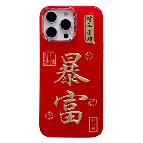 For iPhone 14 Pro Max New Year Design 3D Gold Stamping IMD Phone Case(Wealthy)