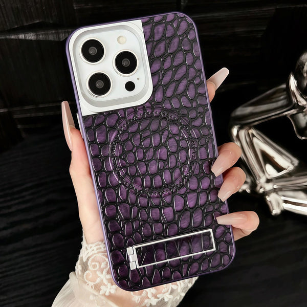 For iPhone 14 Pro Max Pebble Pattern PU MagSafe Phone Case with Holder(Purple)