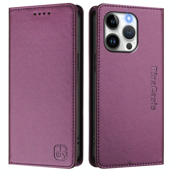 For iPhone 14 Pro Max RC01 Dual-Folded Magnetic Suction RFID Leather Phone Case(Violet)