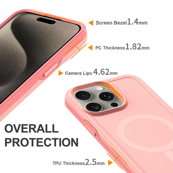 For iPhone 14 Pro Max Shockproof MagSafe Armor PC Hybrid TPU Phone Case(Light Pink+Coral Red)