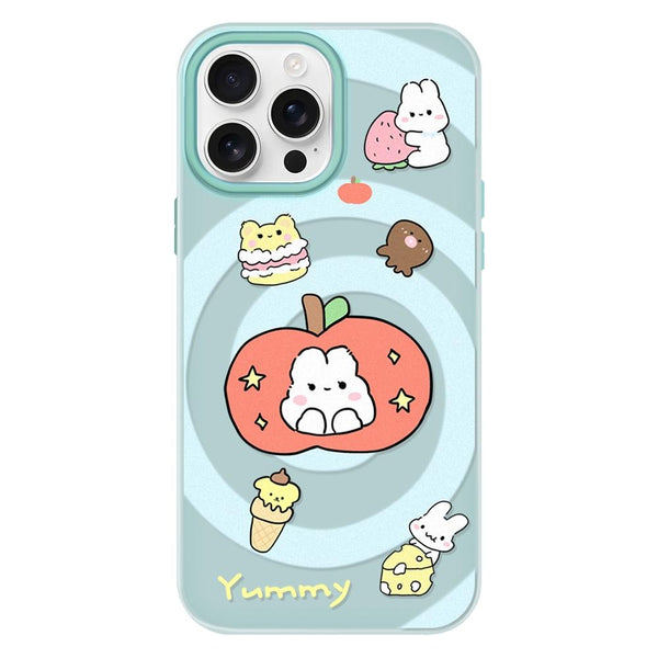 For iPhone 14 Pro Max Skin Feeling Jelly TPU Hybrid PC Phone Case(Apple Rabbit Yellow Light Green)
