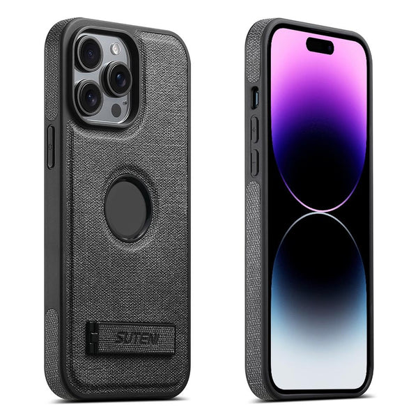 For iPhone 14 Pro Max Suteni G2 Holder Denim Leather Back MagSafe Phone Case(Black)