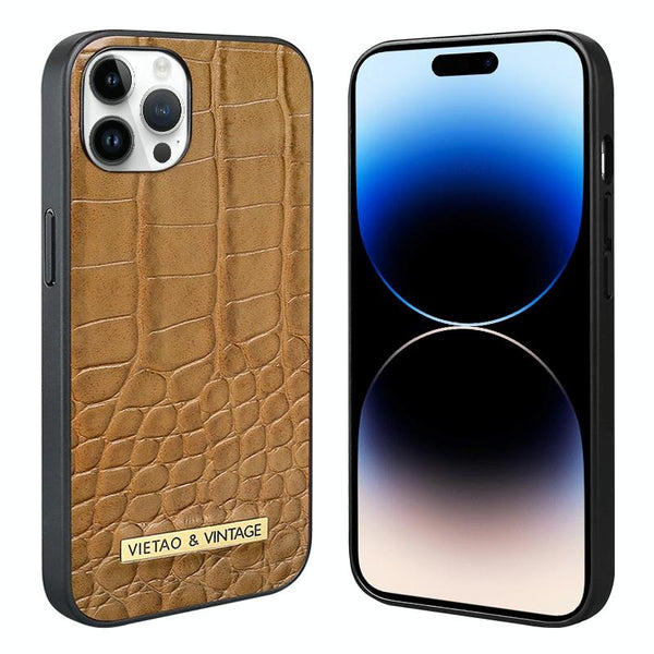 For iPhone 14 Pro Max VIETAO Alligator Texture PU Phone Case(Brown)