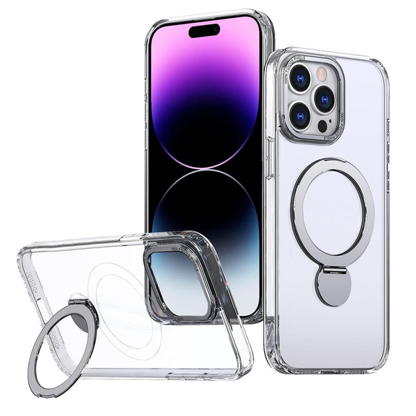 For iPhone 14 Pro Max Wing Series Gen2 MagSafe Metal Ring Holder Phone Case(Transparent)