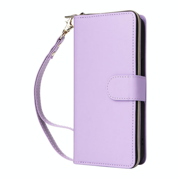 For iPhone 14 Pro Nine-card Slots Zipper Wallet Bag Leather Phone Case(Light Purple)