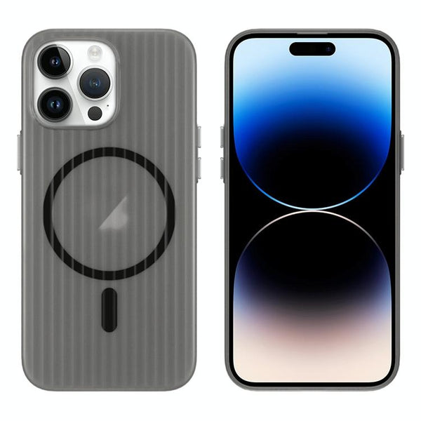 For iPhone 14 Pro PC Corrugated MagSafe Phone Case(Black)