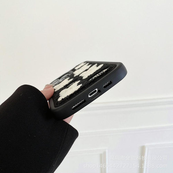 For iPhone 14 Pro Rabbit Plush Silicone Phone Case(Black)