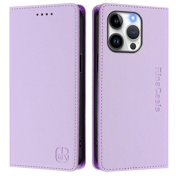 For iPhone 14 Pro RC01 Dual-Folded Magnetic Suction RFID Leather Phone Case(Light Purple)