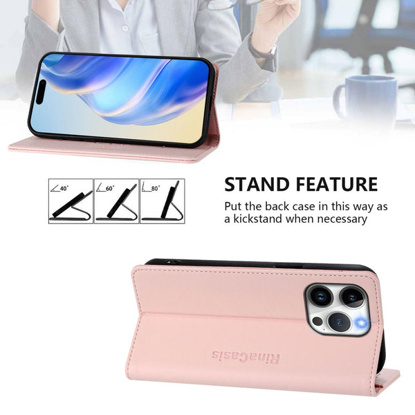For iPhone 14 Pro RC01 Dual-Folded Magnetic Suction RFID Leather Phone Case(Pink)