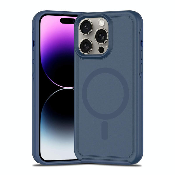 For iPhone 14 Pro Shockproof MagSafe Armor PC Hybrid TPU Phone Case(Ink Blue)
