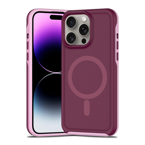For iPhone 14 Pro Shockproof MagSafe Armor PC Hybrid TPU Phone Case(Wine Red+Light Pink)