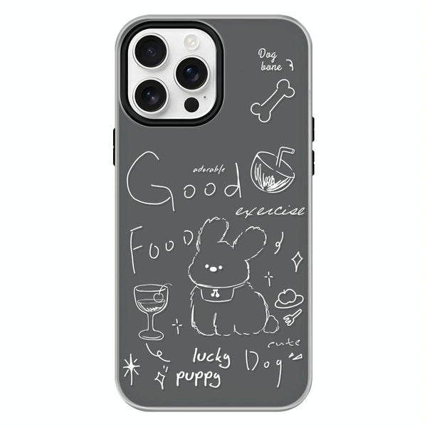 For iPhone 14 Pro Skin Feeling Jelly TPU Hybrid PC Phone Case(Doodle Puppy Black)