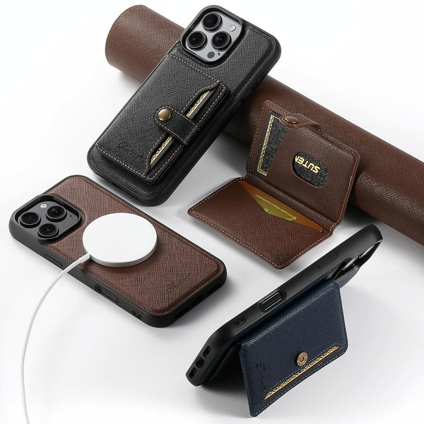 For iPhone 14 Pro Suteni H20 Cross-Grain MagSafe Horizontal Card Bag Back Phone Case(Black)