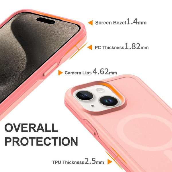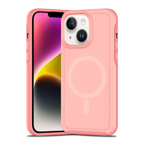 For iPhone 14 Shockproof MagSafe Armor PC Hybrid TPU Phone Case(Light Pink+Coral Red)