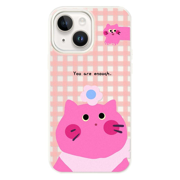 For iPhone 14 Skin Feeling Jelly TPU Hybrid PC Phone Case(Pink Cat White)