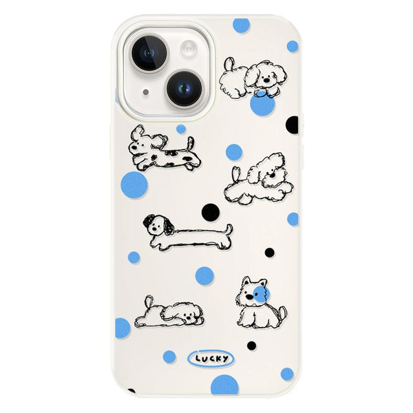For iPhone 14 Skin Feeling Jelly TPU Hybrid PC Phone Case(Polka Dot Puppy White)