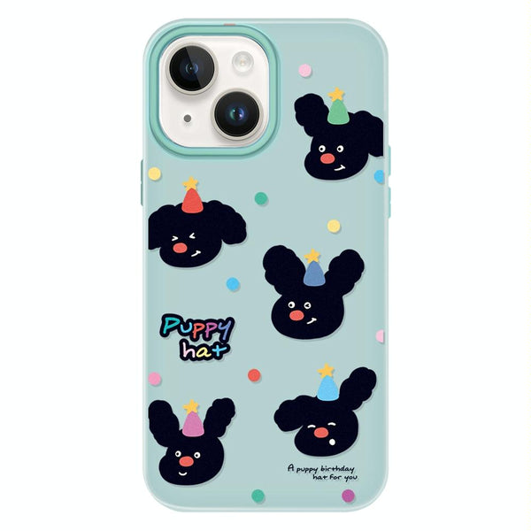 For iPhone 14 Skin Feeling Jelly TPU Hybrid PC Phone Case(Puppy Hat Light Green)