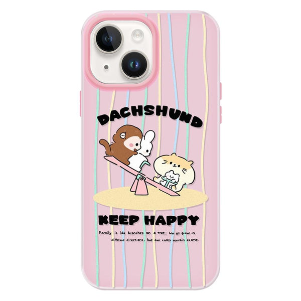 For iPhone 14 Skin Feeling Jelly TPU Hybrid PC Phone Case(Seesaw Animal Pink)