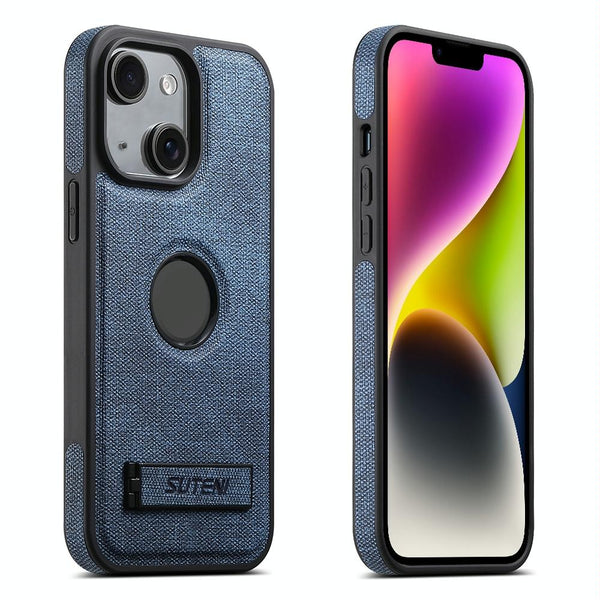 For iPhone 14 Suteni G2 Holder Denim Leather Back MagSafe Phone Case(Blue)
