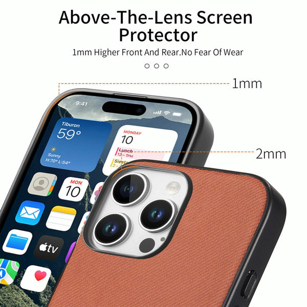 For iPhone 14 Twill Fabric Leather Skin Back Phone Case(Brown)